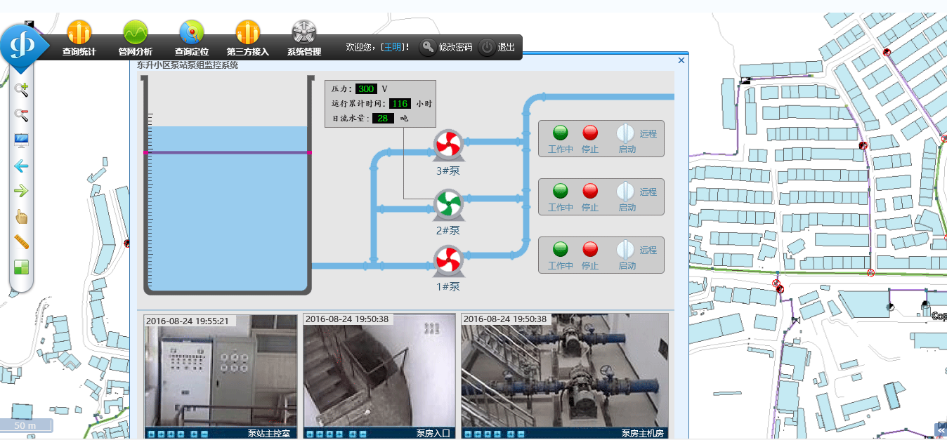 系統建立在以動態和靜態數據相結合、以B/S和C/S雙系統相結合的供水管網電子地圖基礎上,對管線及各種設施進行屬性查詢、定位、統計、分析,對各類查詢和統計結果進行輸出;為爆管、漏水事故的搶修、維修提供關閘方案,為管網的改造優化和擴建提供輔助決策支持;通過GIS的集成,使得管網圖形庫、屬性數據庫及外部數據庫融為一體,不僅圖文并茂、準確高效,而且易于動態更新,為日后管網的優化調度奠定良好的基礎,從而大大提高了管網管理的工作效率和社會服務水平。