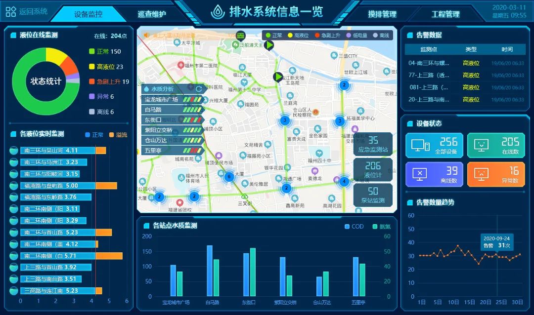 我們運用物聯網、大數據分析以及工作流技術,構建一個全方位監管與業務支撐、能實時反映排水管網現狀的數字化管理平臺。該解決方案提供了豐富的數據分析和可視化功能,實現排水系統“排查-監測-診斷-管理”全過程的管理支撐,以及數據分析與業務場景應用的深度融合,幫助管理人員深入洞察排水系統的運行狀況,為決策提供強大支持。